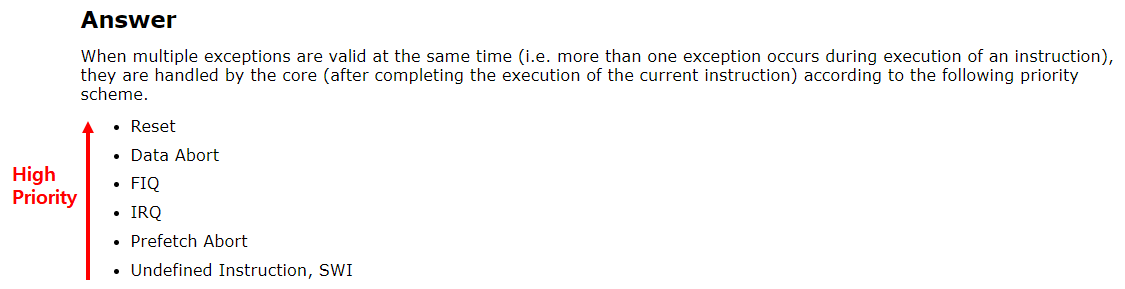 ARM에서는 exception 사이에 priority, 즉 우선권이 존재한다고 설명하고 있다.